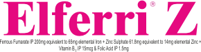 | Elferri Z Caps 30s | Each Capsule contains: Ferrous Fumarate IP 200 mg equivalent to 65 mg elemental iron, Cynacobalamin gelatinised equivalent to Vitamin B 12 IP 15 mcg, Folic Acid IP 1.5 mg, Zinc Sulphate Monohydrate USP 61.8 equivalent to 14 mg elemental zinc. | Blister | 30C | Haematinic | Iron Deficiency Anemia During Pregnancy & Lactation |